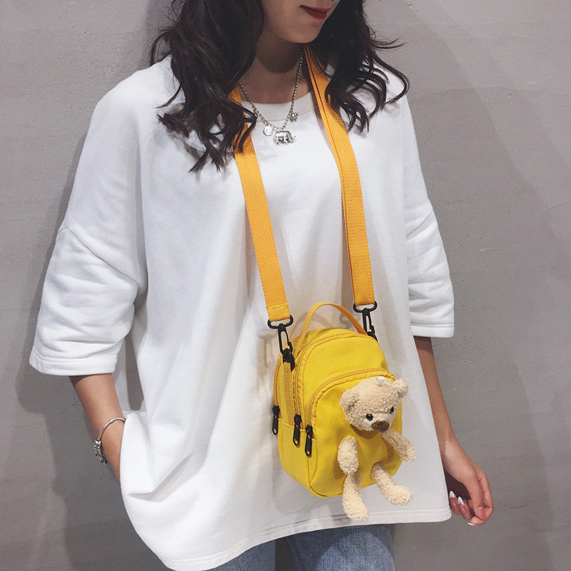 Bear bag shoulder bag canvas women crossbody Joker bag 2020 new Korean version of Japanese Tide Net red bag
