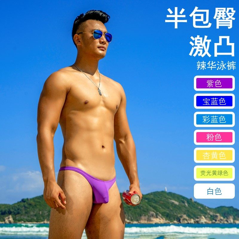 Semi-covered hip swimming trunks-purple-small-exciton semi-covered hip swimming trunks-purple-medium-excited convex semi-covered hip swimming trunks-purple-large-cream convex semi-covered hip swimming trunks-Bau blue-small-exciton-convex semi-covered hip swimming trunks-Baobblue-medium