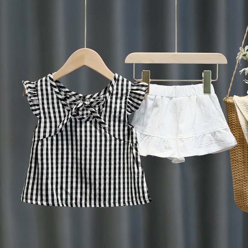 2021 summer new baby girl Western style vest shorts suit girls casual thin section open back doll shirt