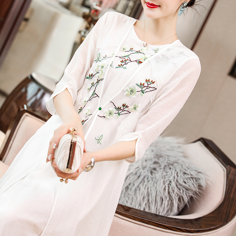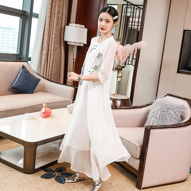 Two-piece fairy sling suspender skirt women's embroidery Zen tea clothes retro temperament Chinese style summer women's