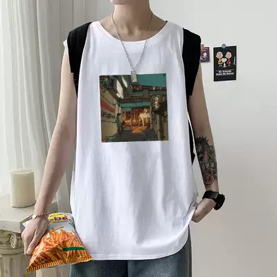 Hurdle vest men's cotton Tide brand sports summer thin sleeves men's waistless T-shirt men's loose tide hip hop