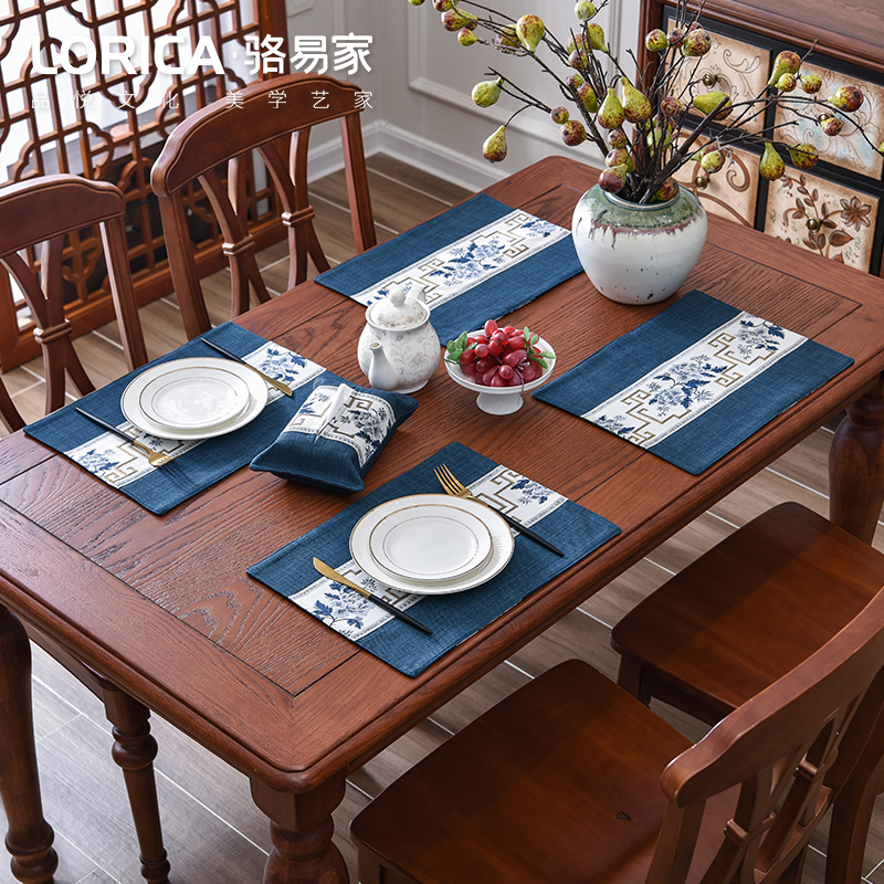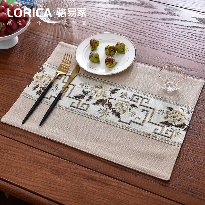 Luo Yi Jia Chinese placemat Fabric embroidery mat Zen Chinese style mat Cotton and hemp placemat mat Coaster table mat