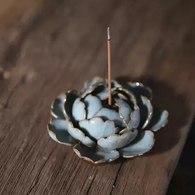 Jingdezhen handmade peony ceramic decoration incense burner hand-made line incense burner Zen incense tea tray tea pet tea play