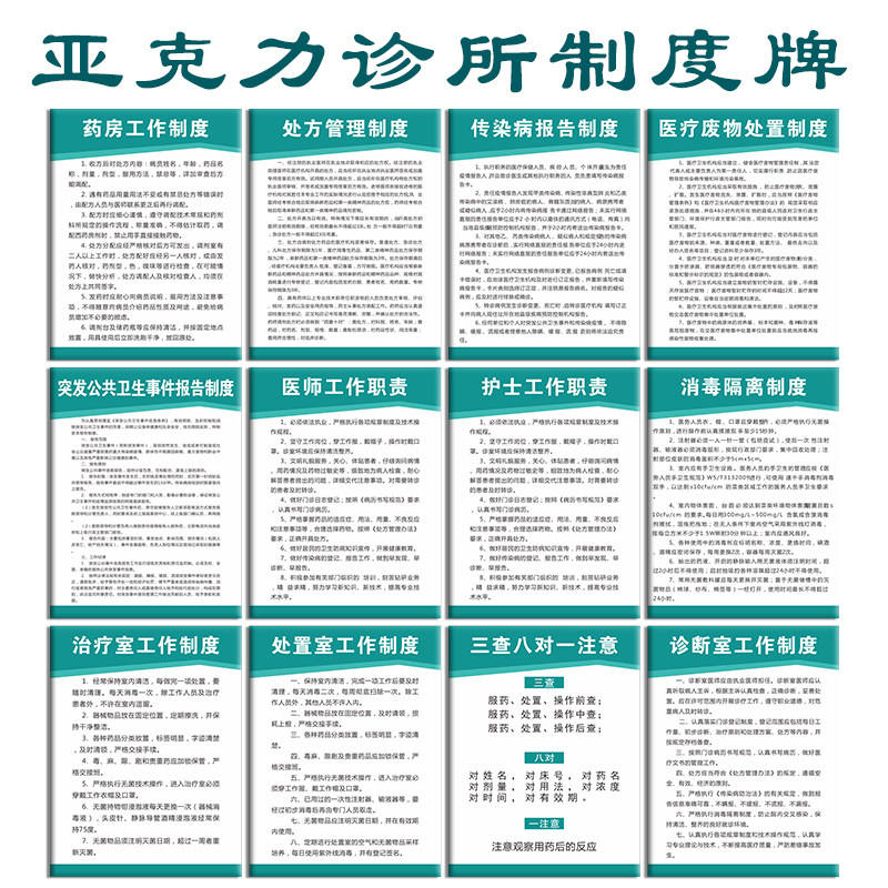 Pharmacy work system Prescription management system Infectious disease reporting system Medical waste disposal system Public health Emergency reporting system Physician job responsibilities Nurse job responsibilities Disinfection isolation system Treatment room