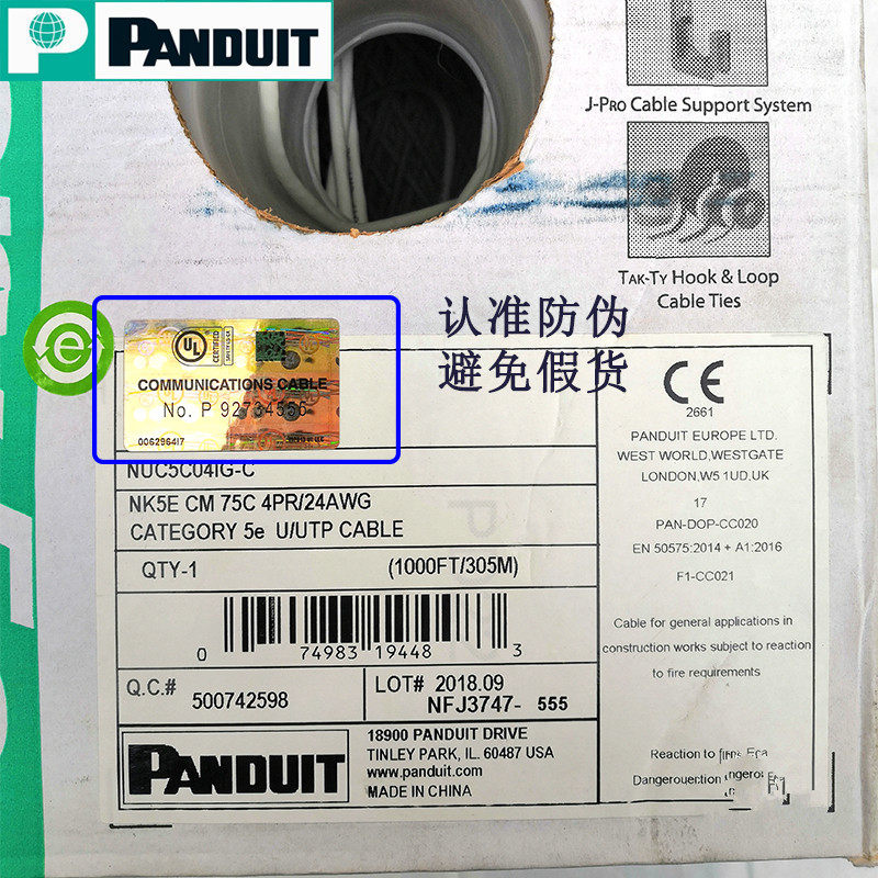 Original dress PANDUIT Pan Delta five types of non-shielded network routes PUC5504IG 100 trillion UTP cable