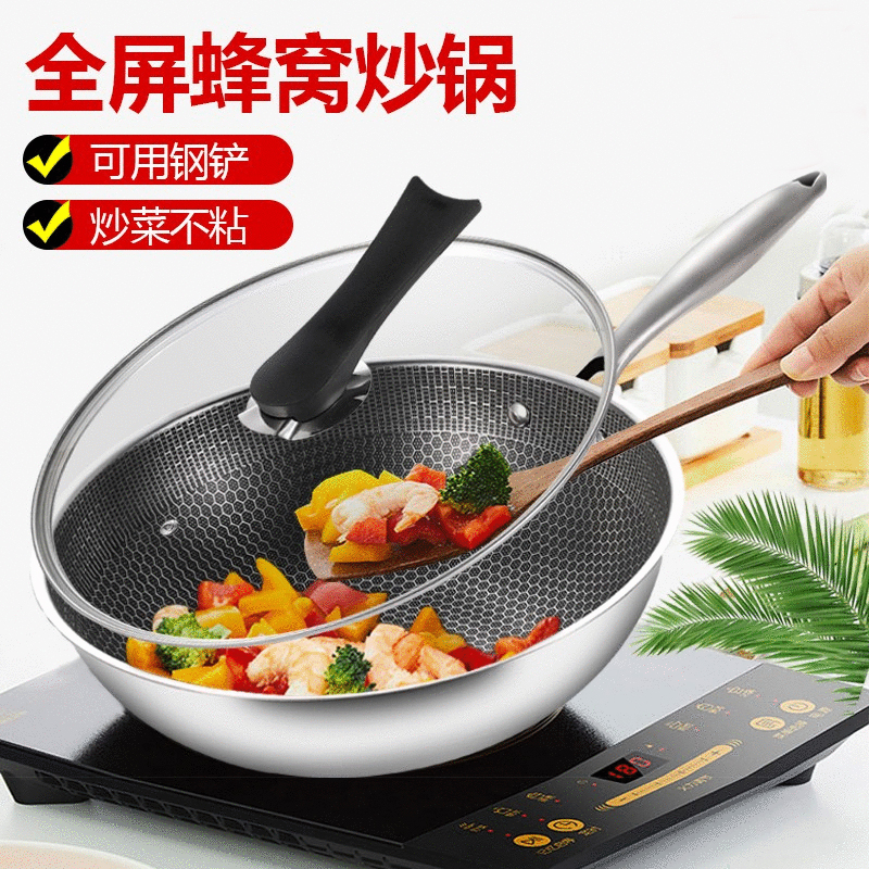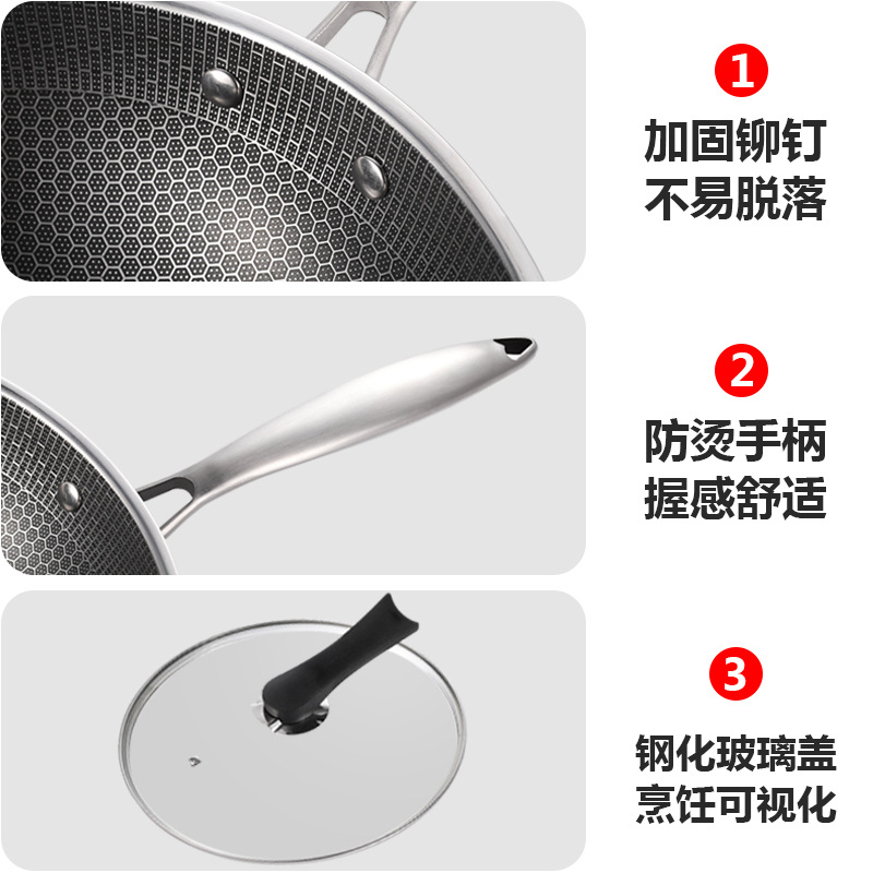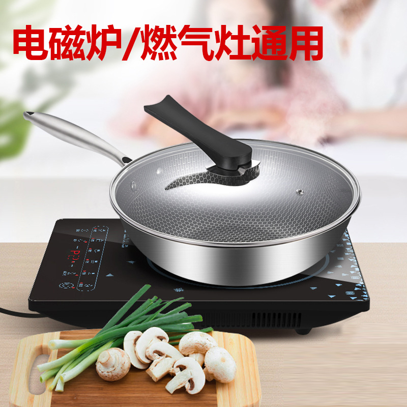 No-smoke frying pan without dipping into the pan household without coating 304 stainless steel frying pan gas special