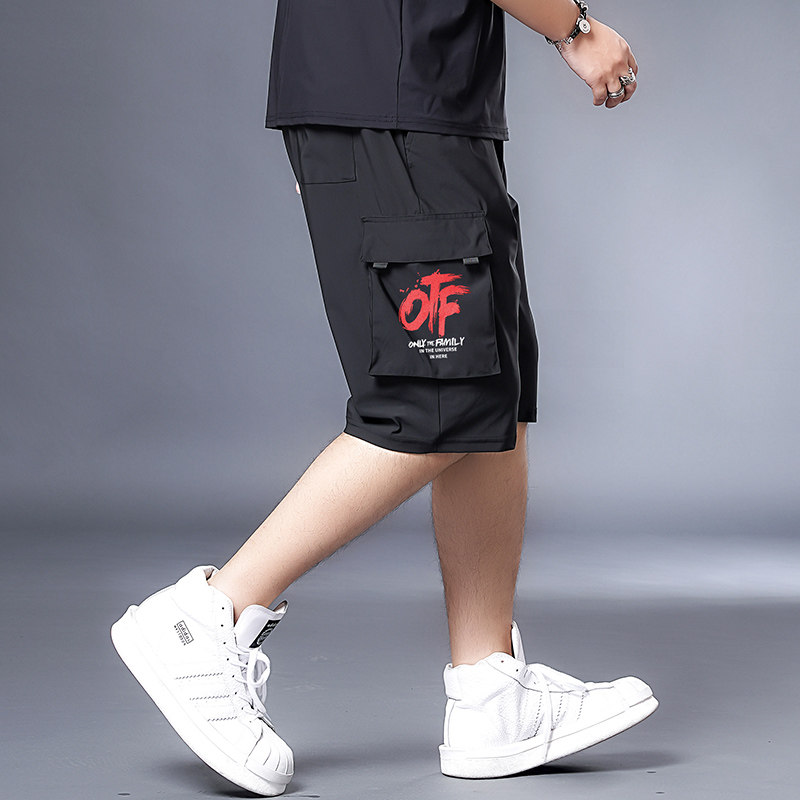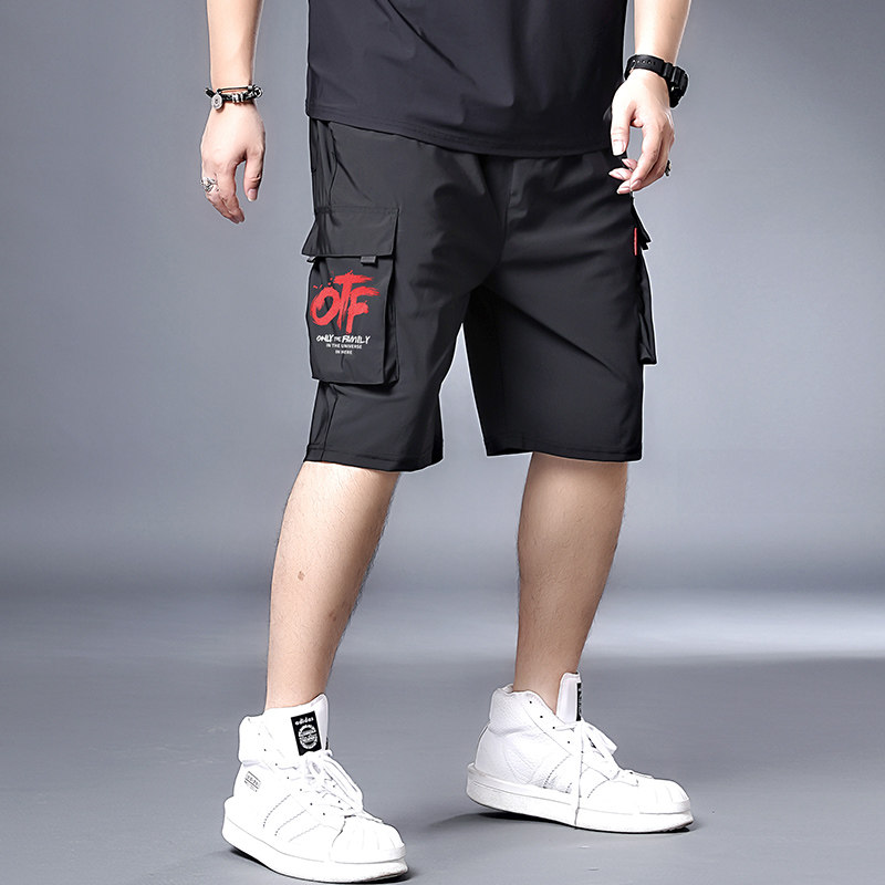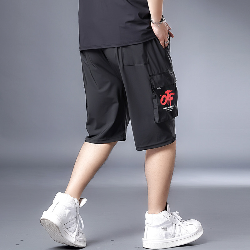 Large size sports tooling shorts male boomers overweight and fattening up 200 catties Loose Ice Silk 5 Sub-pants Wearing Beach Pants
