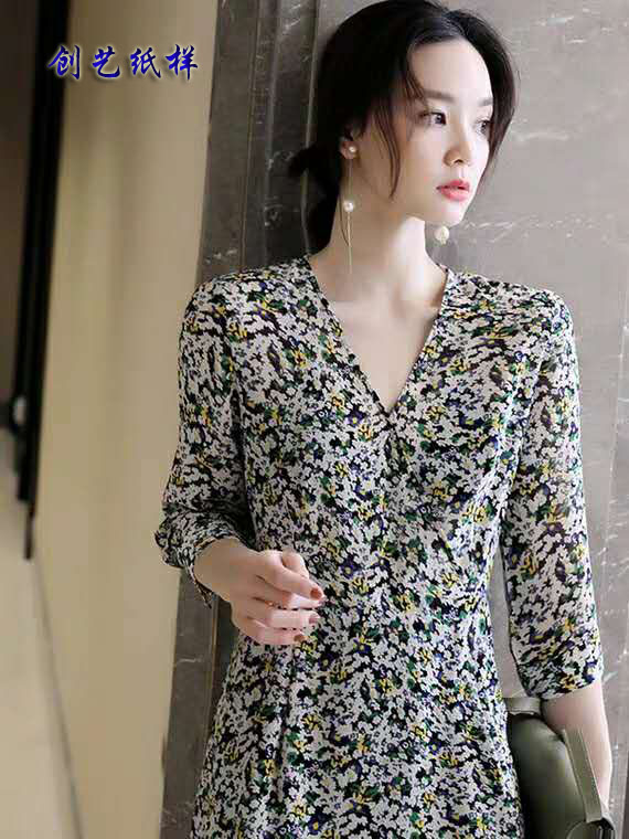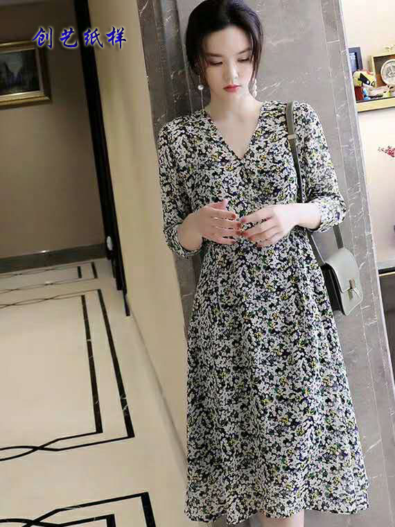 DIY little daisy CX97 cross collar in the sleeve-crushed flower chiffon dress new paper sample paper 1:1 real-style tailoring