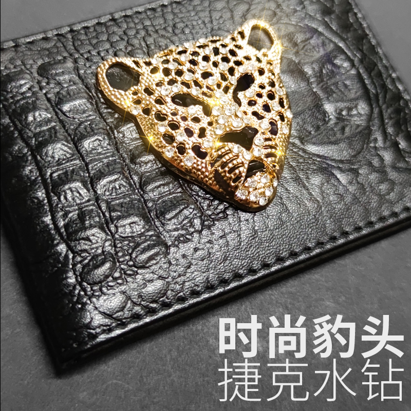 Head Layer Bull Leather Trendy New Driving Leather Line Driving License Leather Jacket Card Bag Women Leopard Child Document Cover ID Protective Sheath