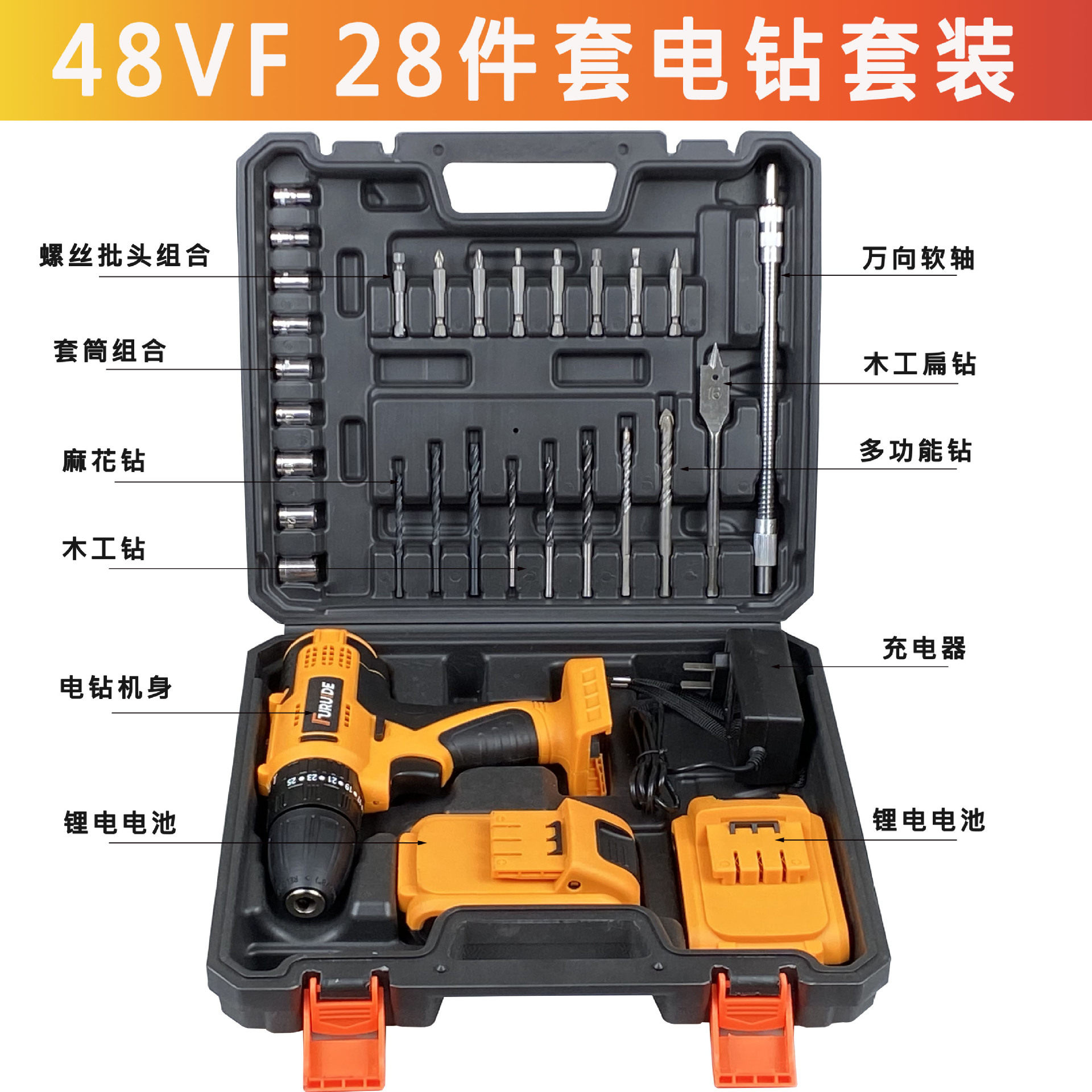 Fred manufacturers direct multifunctional lithium battery rechargeable hand electric drill electric screwdriver home hardware tools