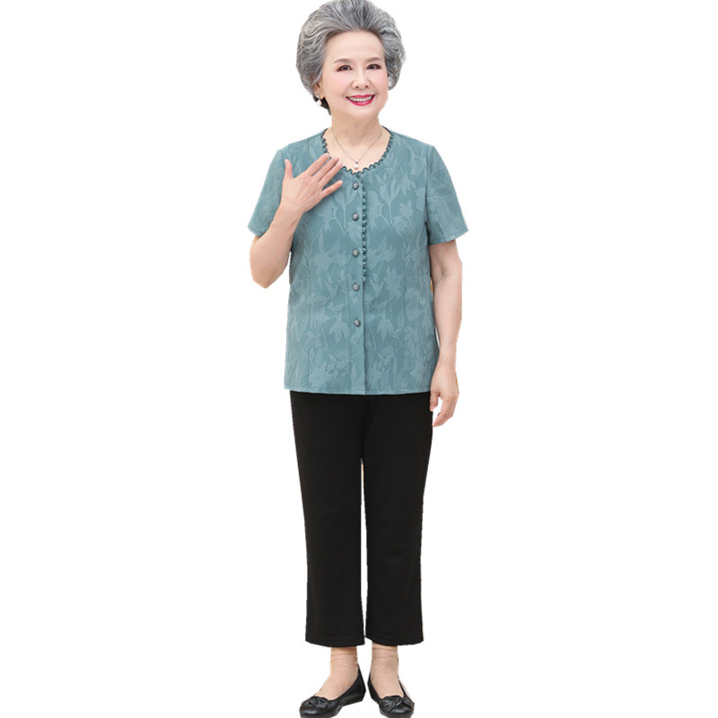 Middle-aged and elderly female summer clothes grandma dress with thin short sleeve suit 60-70-year-old mom blouses T-shirt wife's elderly clothes