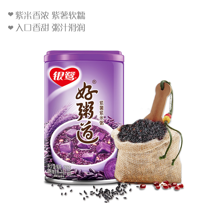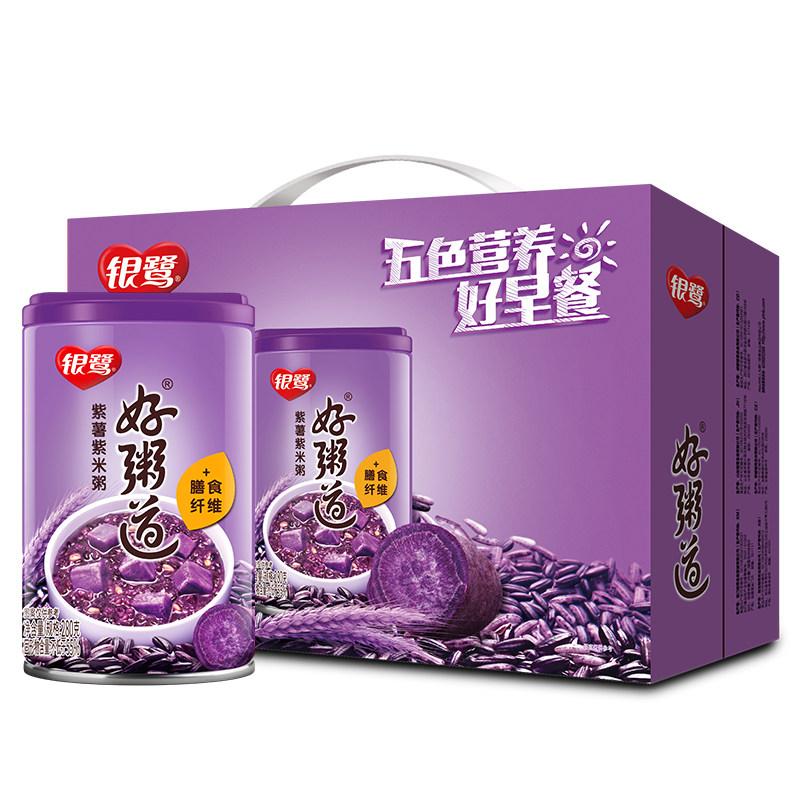 Yinlu good porridge, purple potato and purple rice instant ready-to-eat breakfast eight-treasure porridge 280g*12 whole box of gifts
