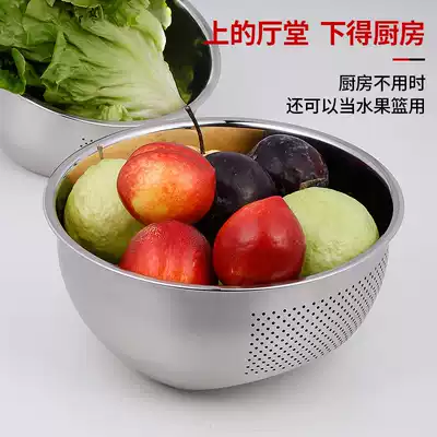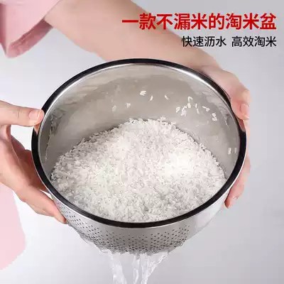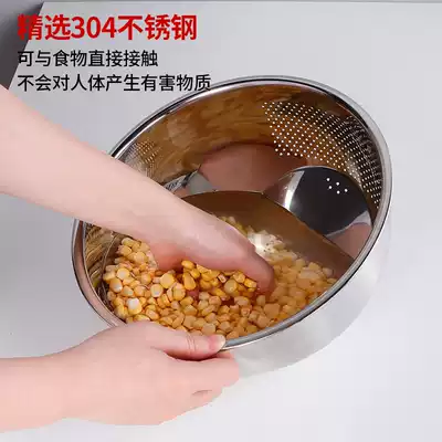 Amoy rice basin drain basket vegetable basin Kitchen 304 stainless steel basin Household washing fruit basket artifact fruit and vegetable drain basin