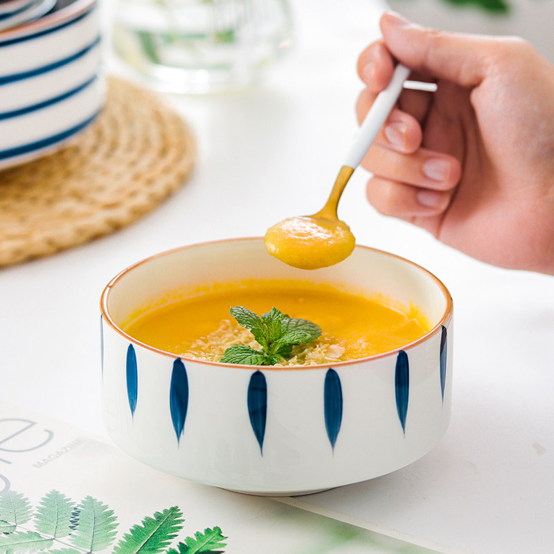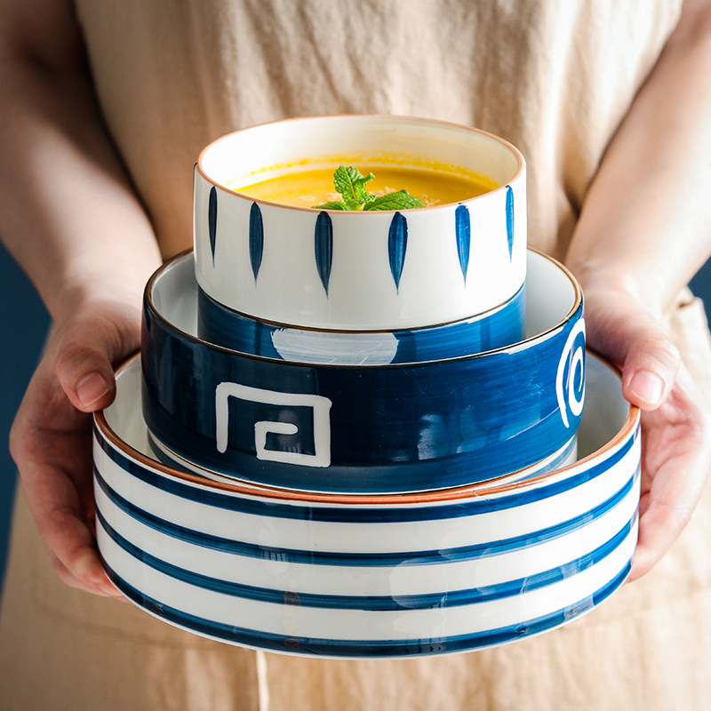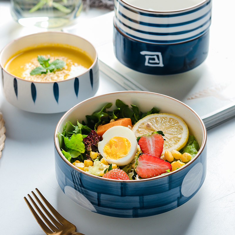 Bowl Guiren Japanese-style Qing Kiln hand-painted underglaze ceramic rice bowl Straight noodle bowl Ramen salad soup bowl Household creativity