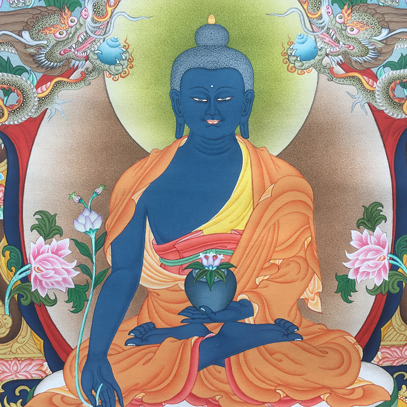 Pure hand-painted Thangka Pharmacy Buddha High 50cm Shanwuji Nepal Thangka Art Painting Academy produced TJ13