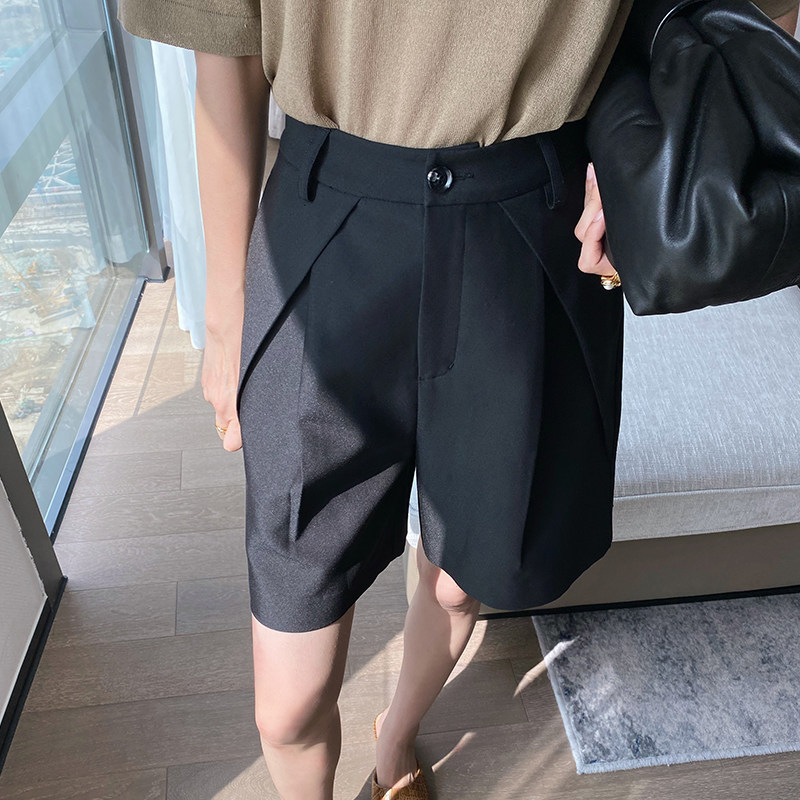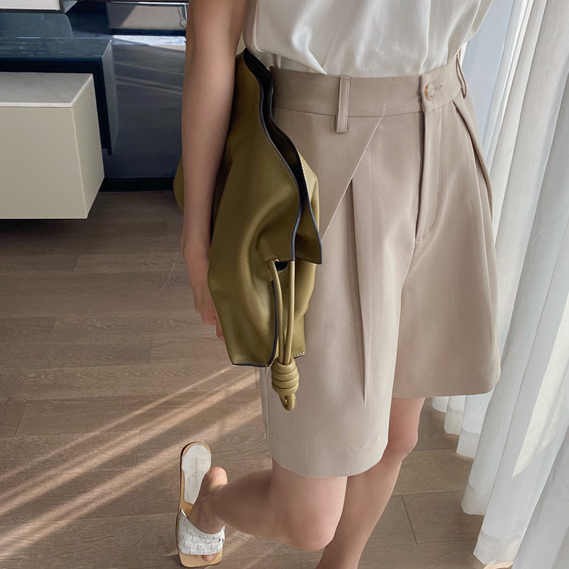 Cui Aunt Cui customized eight-character pleated thin suit shorts five-point pants women's summer thin casual wide pants tide