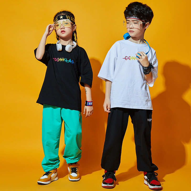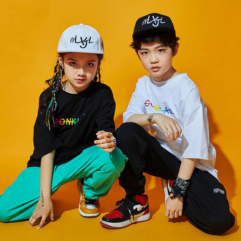 Children's street dance choking boy hip hop suit toddler short sleeve long pants handsome pants handsome clothes female big boy jazz outfits