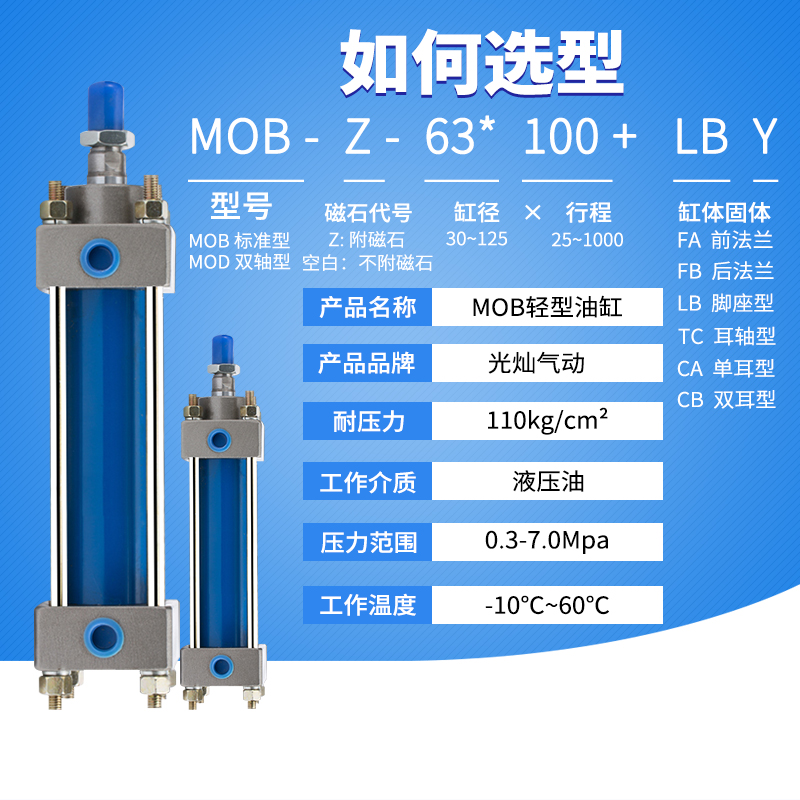 MOB40 light hydraulic cylinder lifting pull-lever oil top oil cylinder large thrust low-pressure cylinder stroke adjustable non-standard