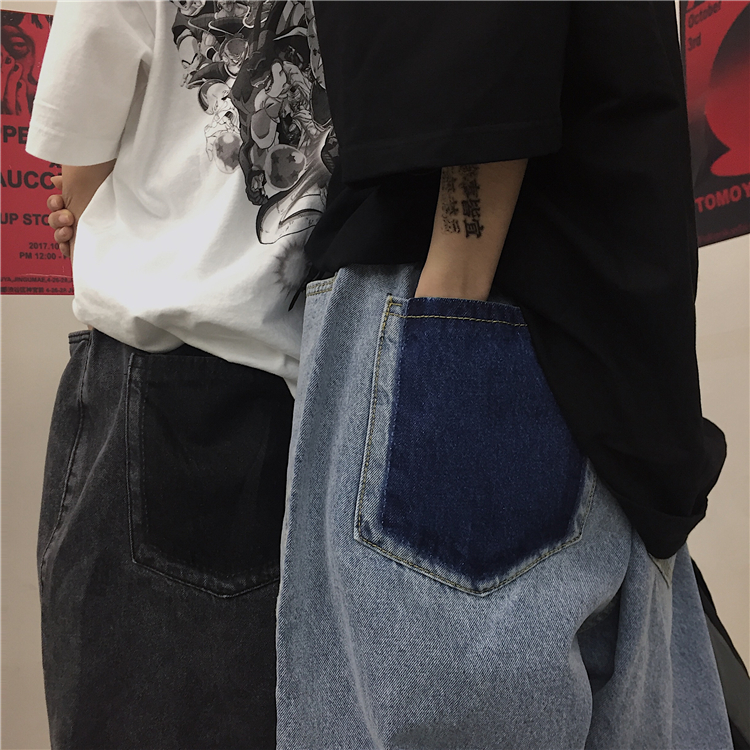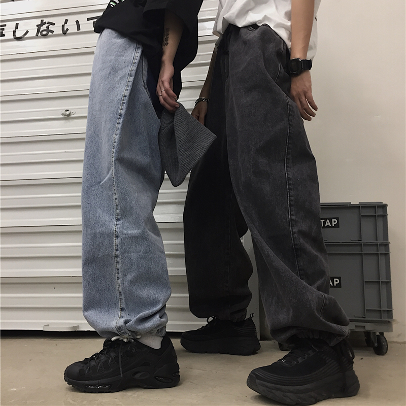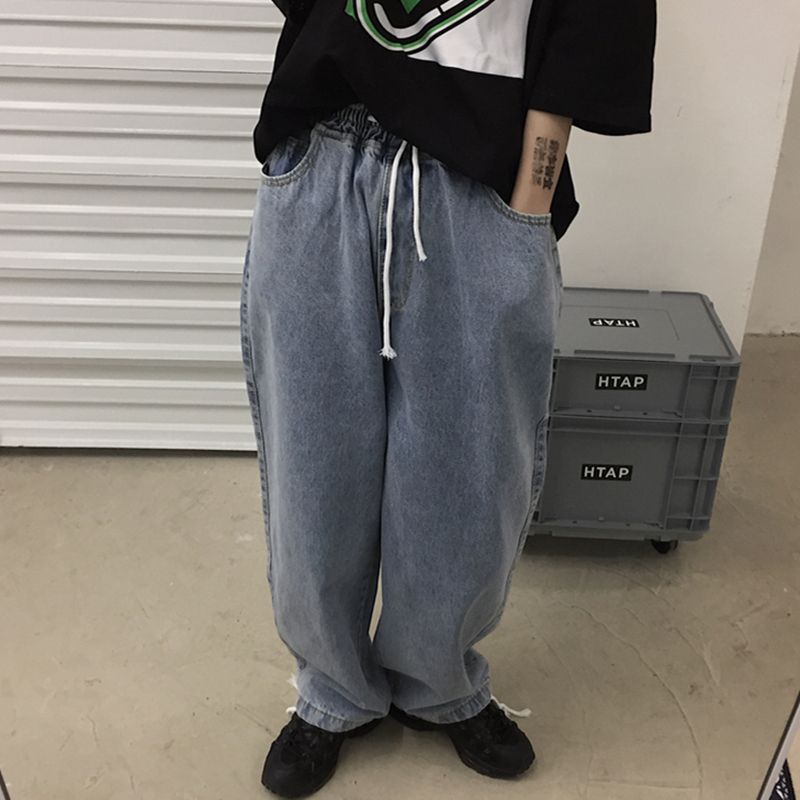 INSstudios trend ins retro hip-hop loose wide-leg pants drawstring elastic jeans trousers men's and women's tide