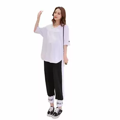 Pregnant women summer suit fashion maternity inspection out of Foreign school net red summer loose T-shirt tide mom nine-point pants two-piece set