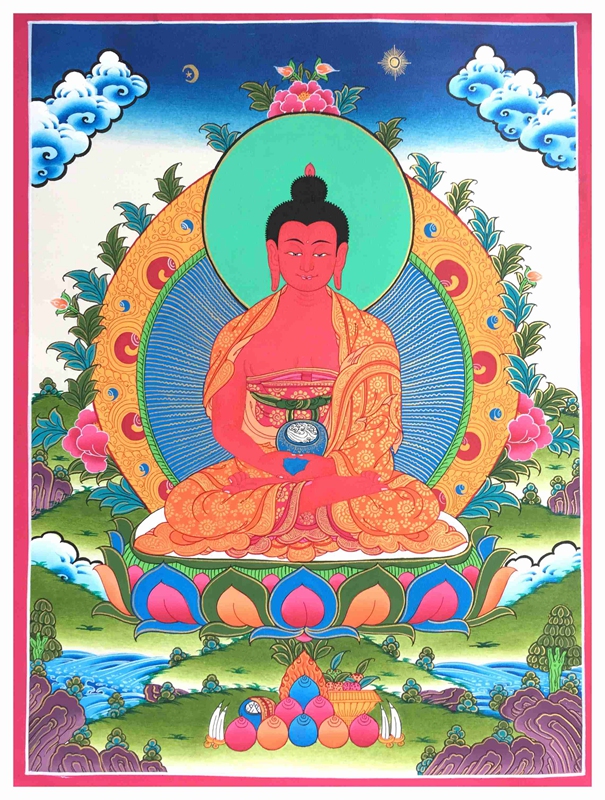 Pure hand-painted thangka Amitabha height 52cm Shanwu set Nepal thangka art painting academy TS30