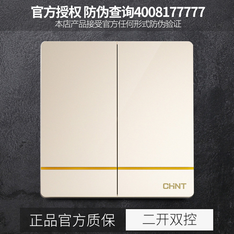 Zhengtai 86 type switch socket panel 2L champagne gold two-open double-cut two-way switch large panel home concealed