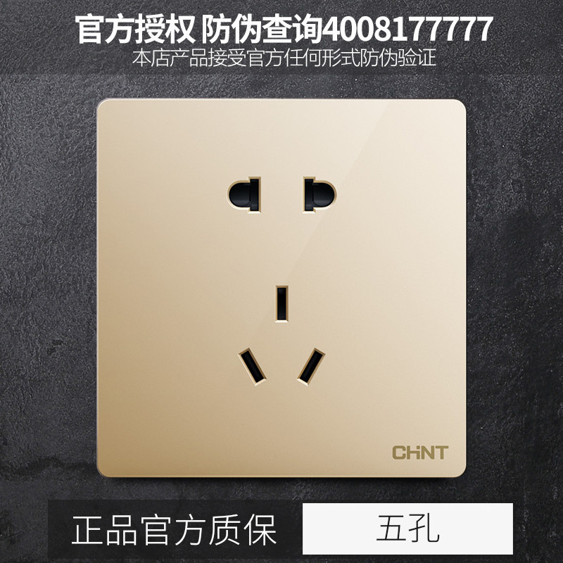 Zhengtai 86 Socket Panel 2L Champagne Gold Five Holes 5 Eyes 23 Plug-in Power Home Wall Switch Flame Retardant Concealed