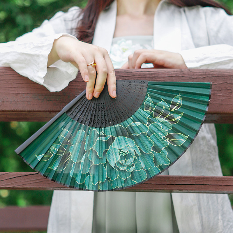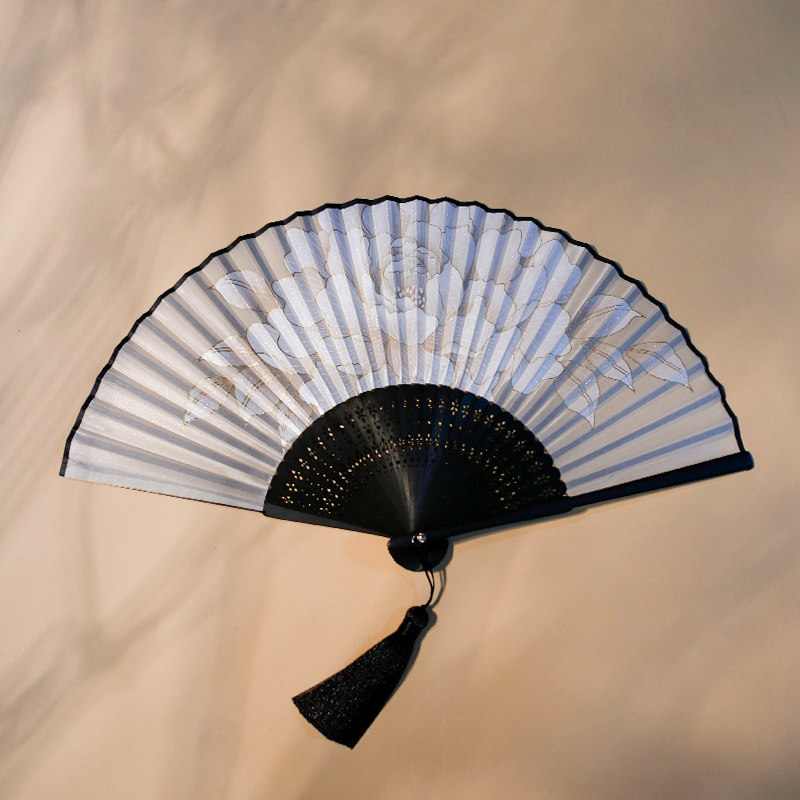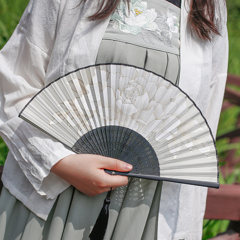 Ritual peony summer folding fan women's antique fan Han suit folding fan portable ancient fan female tassel