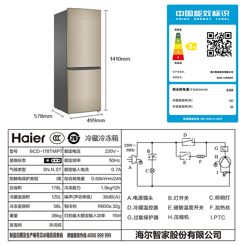Haier BCD-178TMPT Double Door Small Home Official Rental Dorm Double Door Small Refrigerator