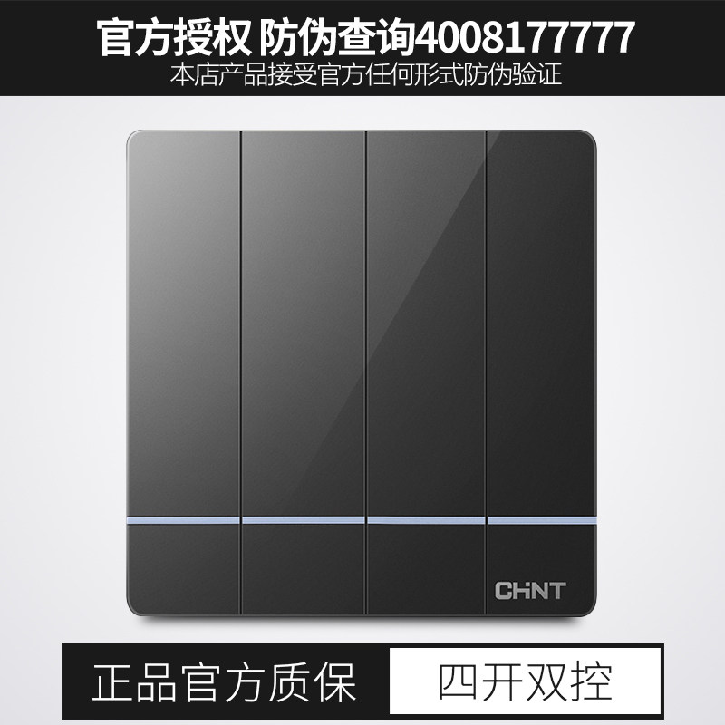 Zhengtai 86 type switch dark gray four-open double-cut four-bit 4-open double wall socket panel concealed 2L