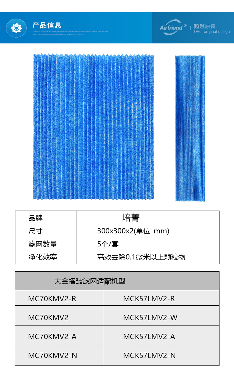 Adapted large gold air purifier filter screen MC70KMV2MCk57lMV2 folds bac006a4c filter core