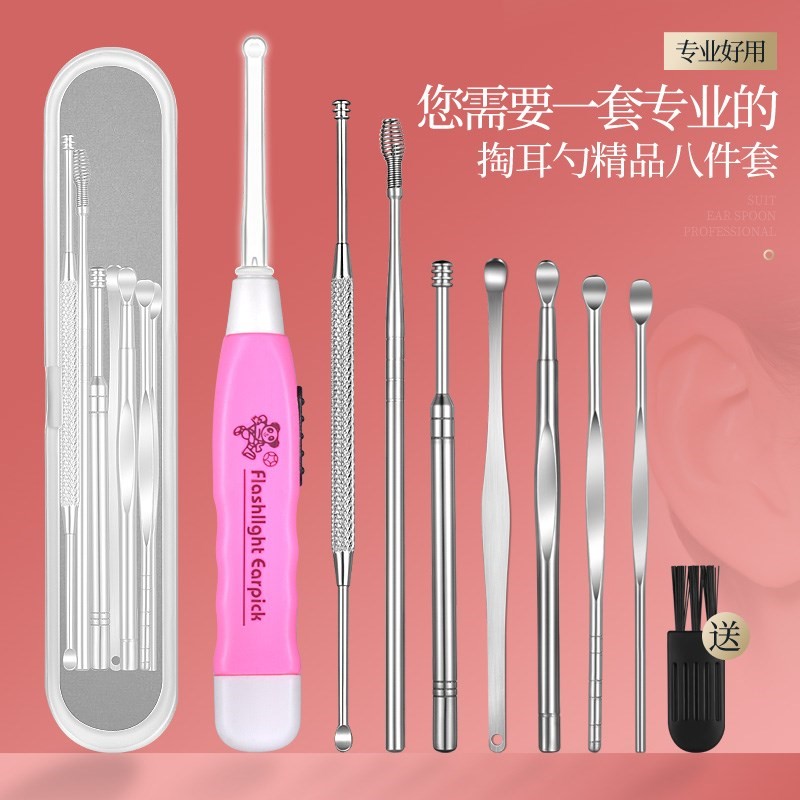 Children's visual ear-digging spoon, ear-picking artifact, ear-picking set, luminescent tool, master button cleaner, ear-suction