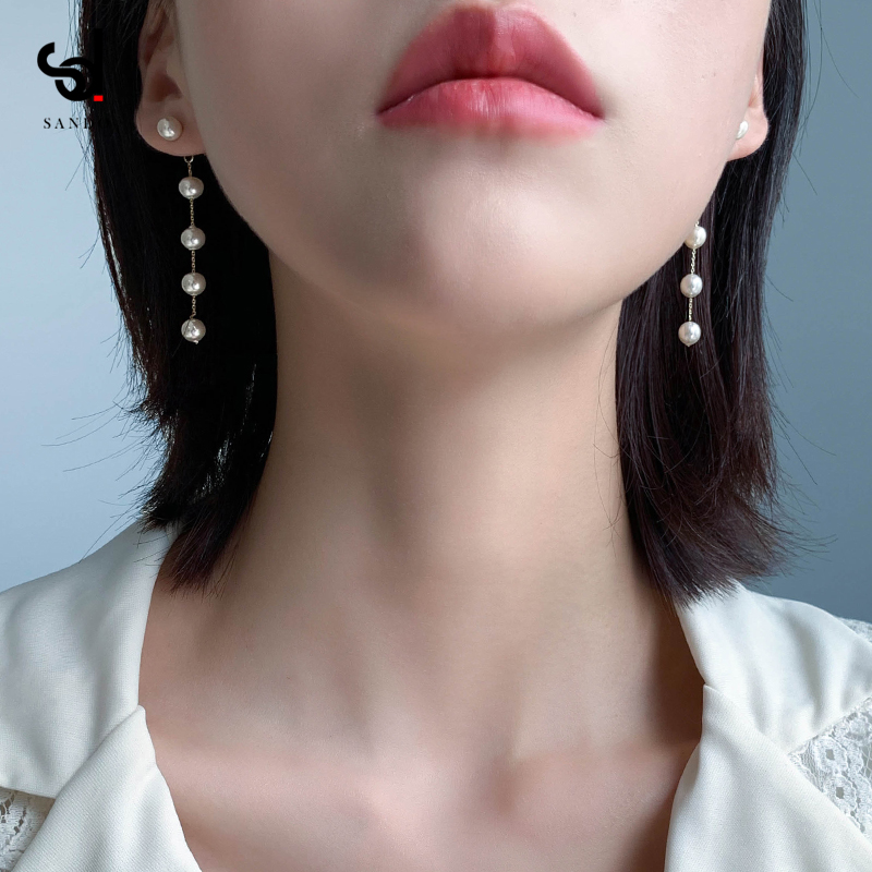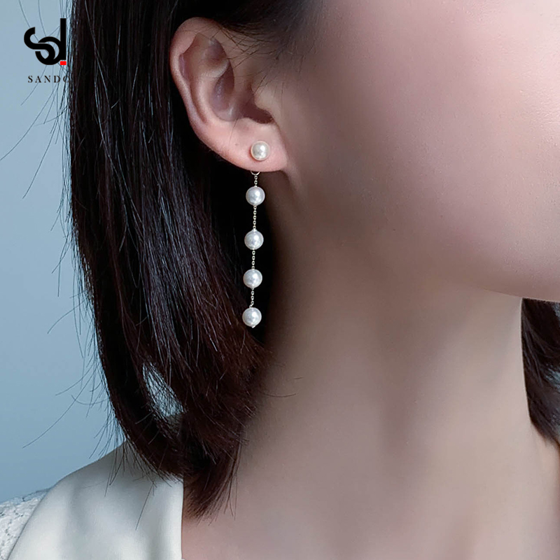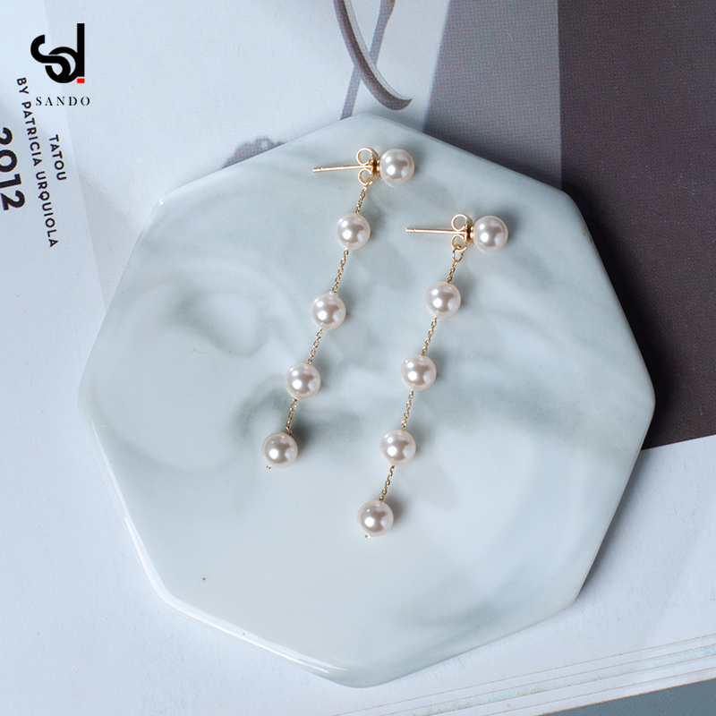 Small pearl earrings long temperament round face thin high-grade sense earrings women's ear line 2020 new trend drop earrings