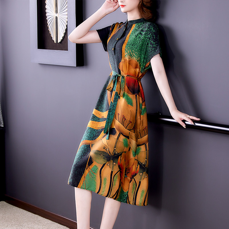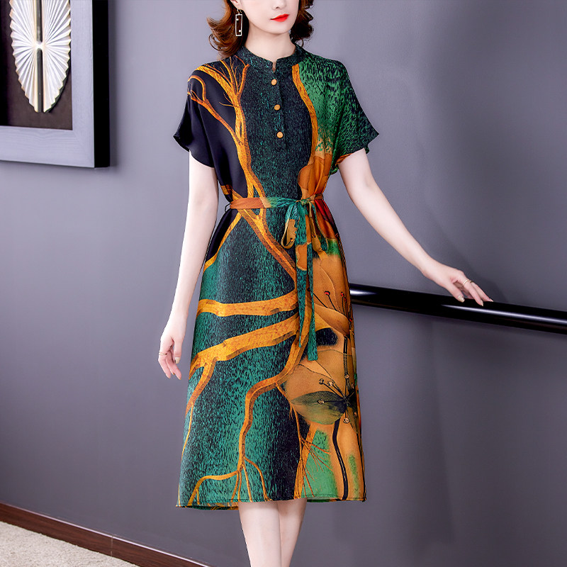 Heavy xiangyun yarn dress large size cover belly noble lady age reduction mother silk skirt 35 years old a 45 women's summer