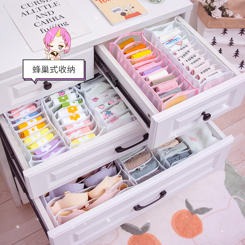 Lingerie underwear containing box cloth art small checkered honeycomb cohorts Drawer Split home Socks Finishing Deity
