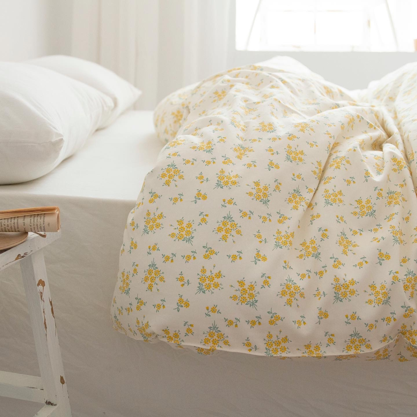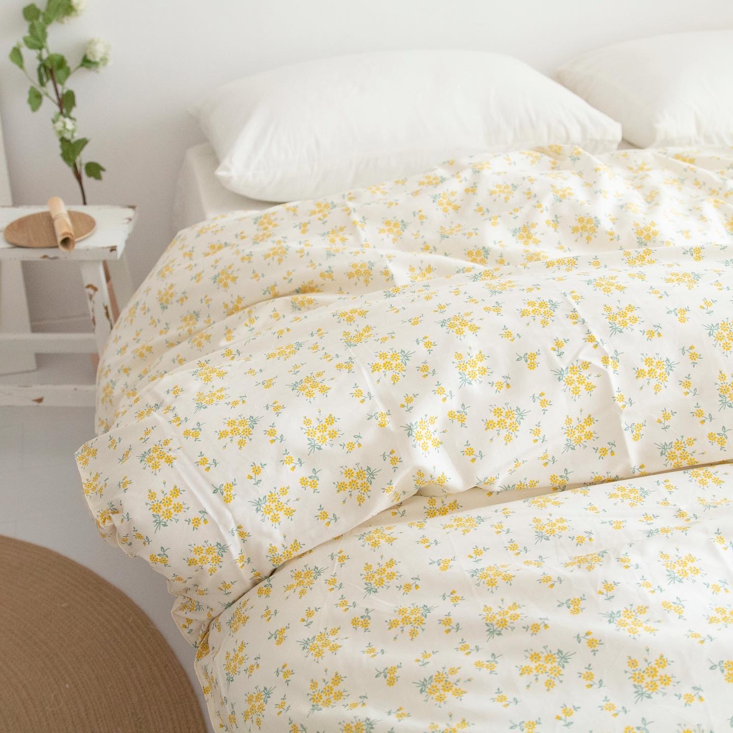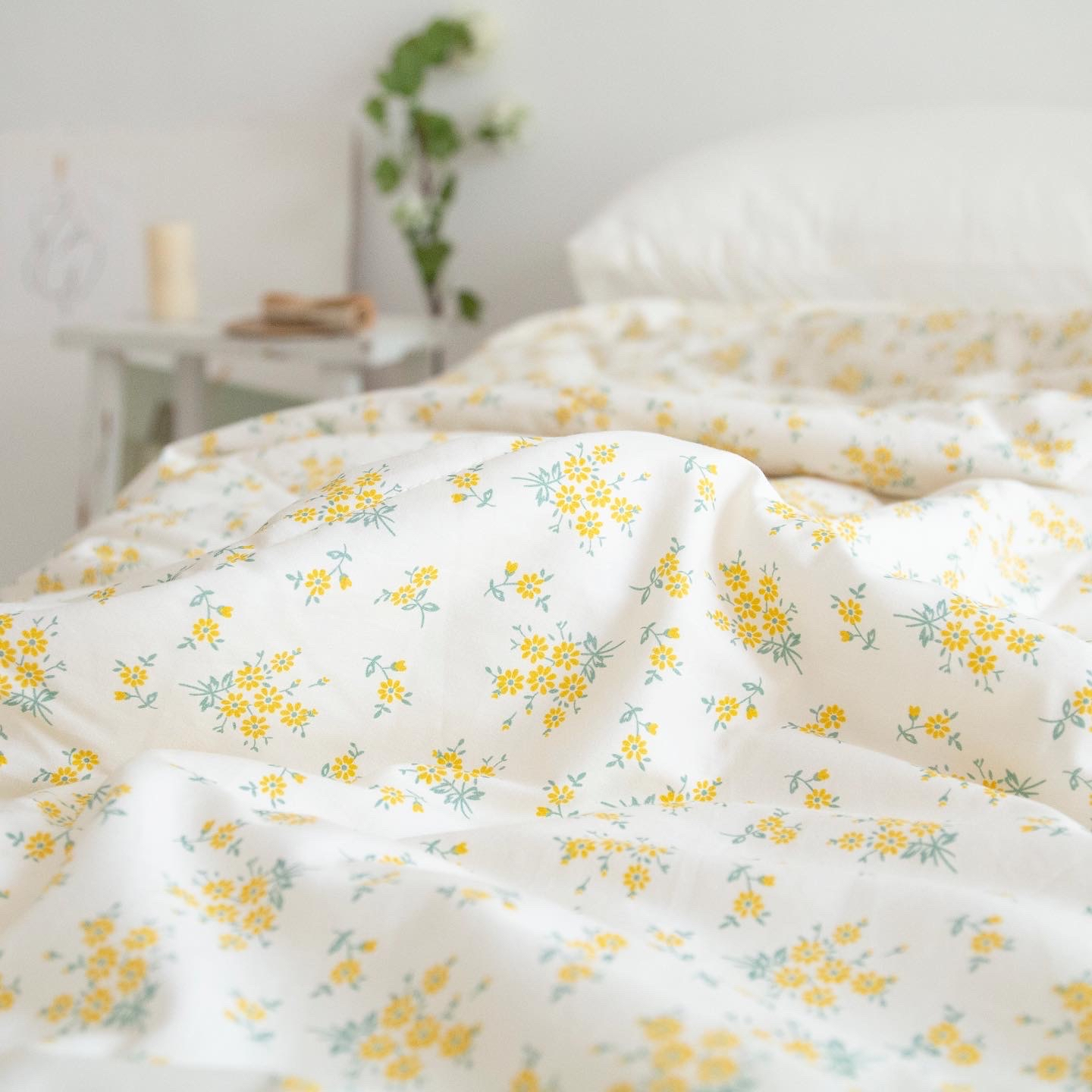 Super beautiful fresh and clean small yellow flower floral cotton one-piece custom quilt cover quilt cover mattress cover single double spring and summer