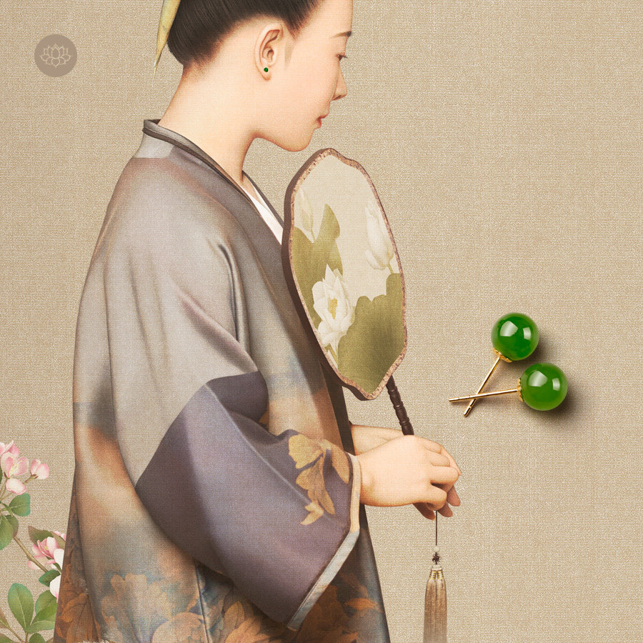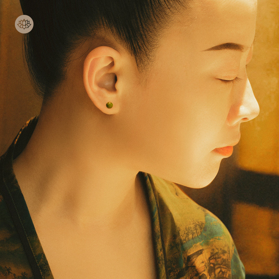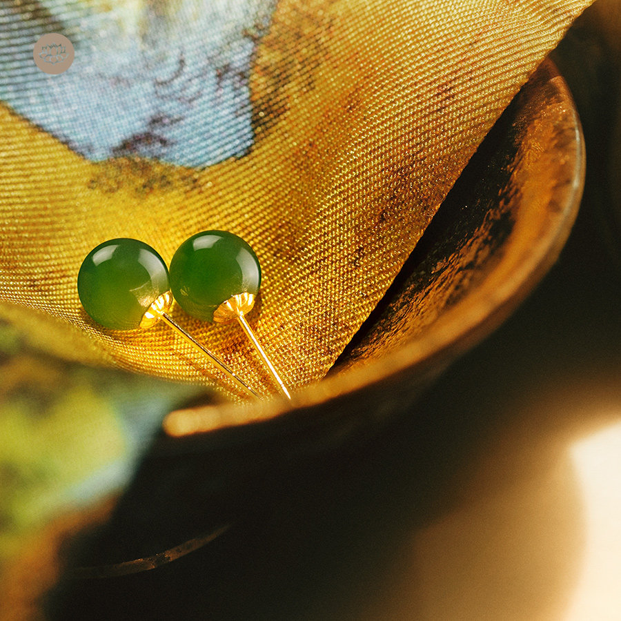 Medovin set up as a double and field Bite jade ear nail classical country wind 18k gold jewellery female inlaid earpiece