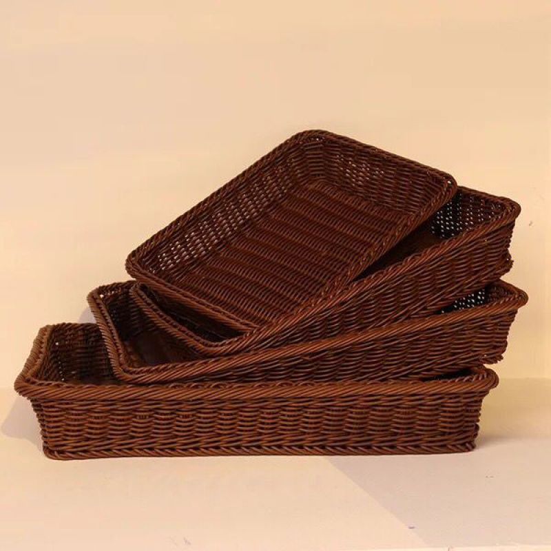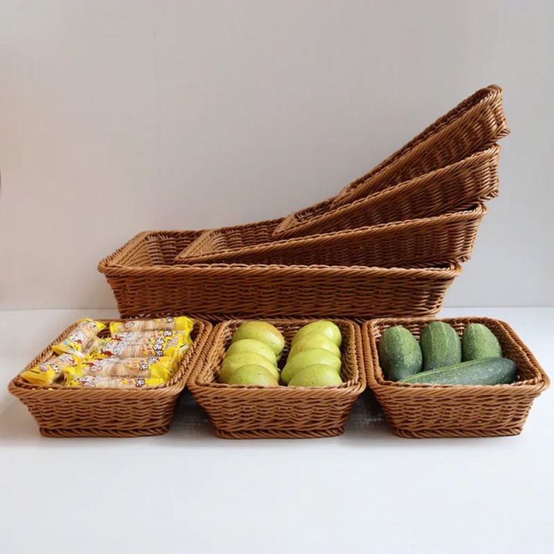 Imitation rattan basket bread basket fruit basket supermarket hotel display basket vegetable blue storage basket willow blue shelf blue bamboo basket
