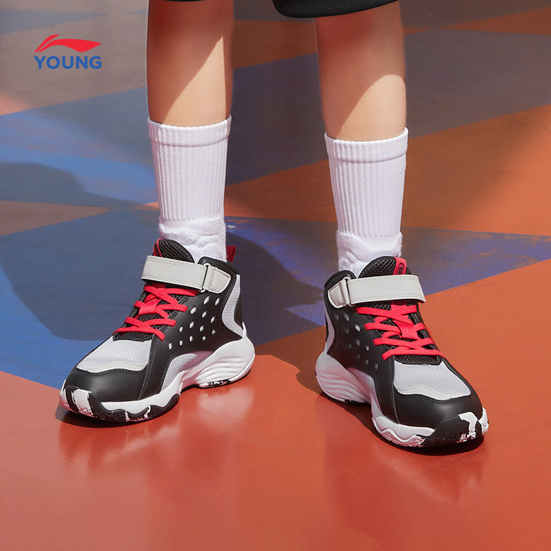 Li Ning children's shoes basketball shoes boys big boy 2020 Falcon round toe youth shoes mid-top fashion casual sports shoes
