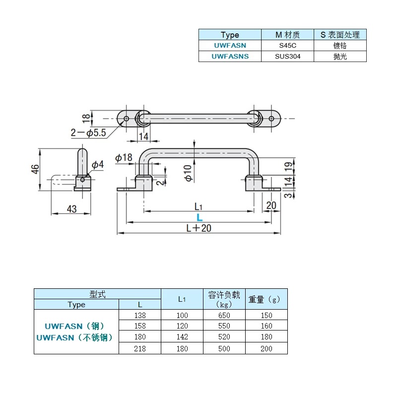 UWFASN138 (iron plated chromium) UWFASN158 (iron plated chromium) UWFASN180 (iron plated chromium) UWFASN218 (iron plated chromium) UWFA