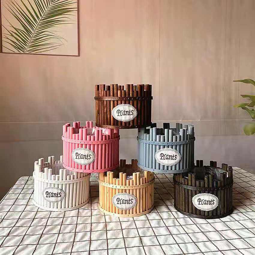 Retro old wood stick flower pot European pastoral wooden flower device home decoration ornament succulent flower arrangement fence vase