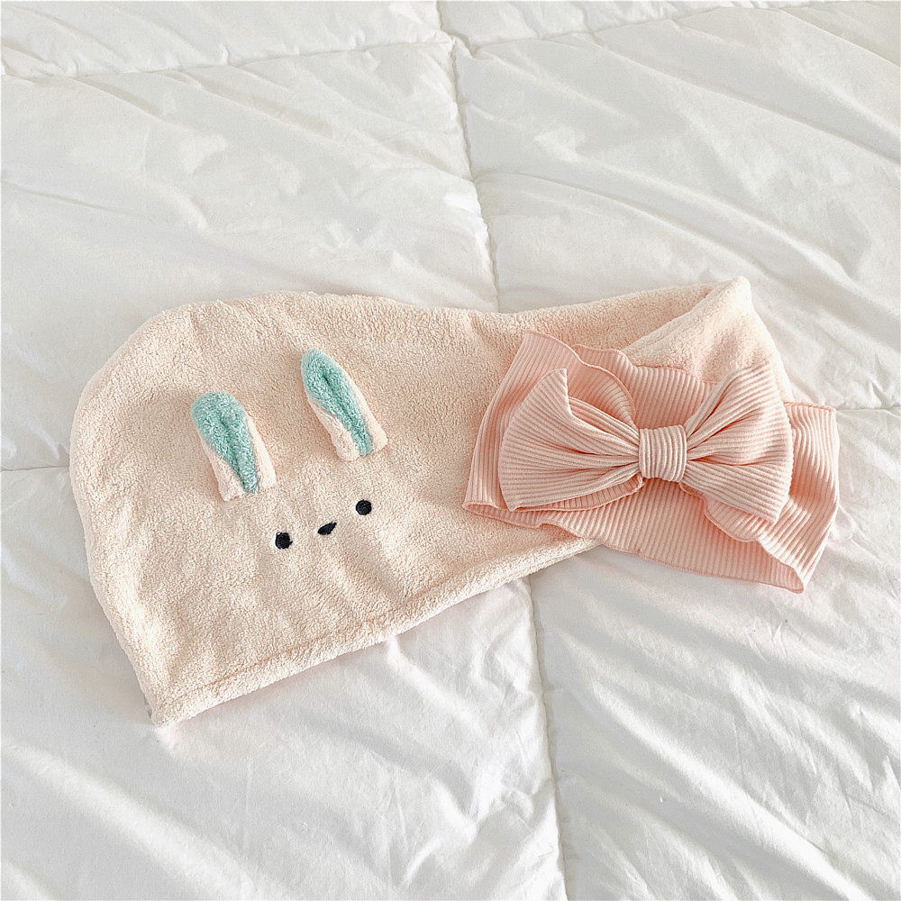 R44 Japan DAN cute to have no friends cute cartoon pattern coral fleece dry hair cap hair band set