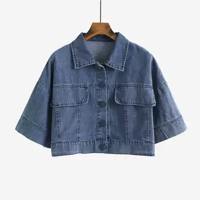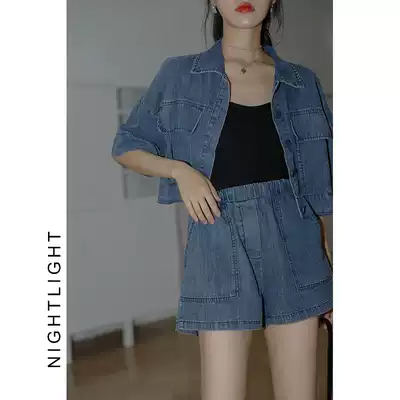 Denim suit women 2021 spring new vintage short coat wide leg shorts two piece elastic waist fashion set