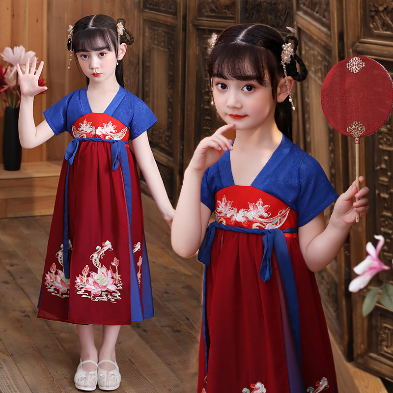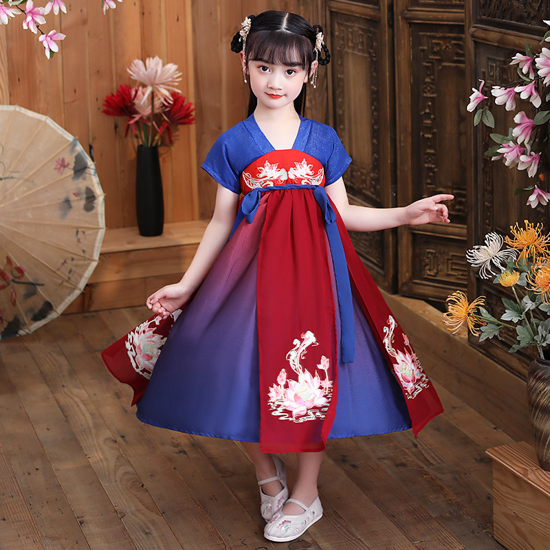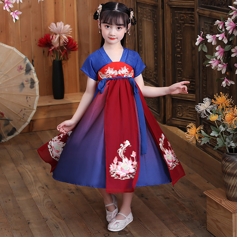 Chinese wind girl dress autumn super fairy girl antique dress thin dress thin air 12 - year - old summer 20