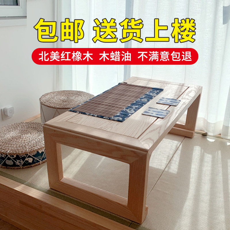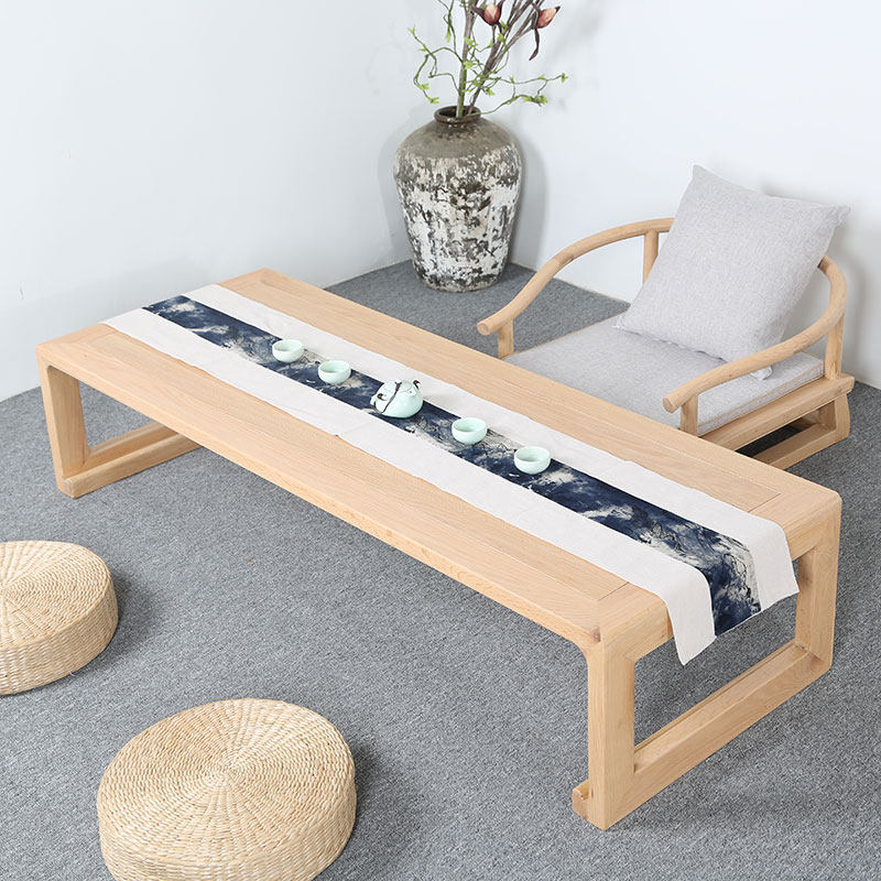 Solid wood tatami coffee table sitting on the ground Japanese Zen bay window table light luxury low tea table combination Kang table oak tea table and chairs