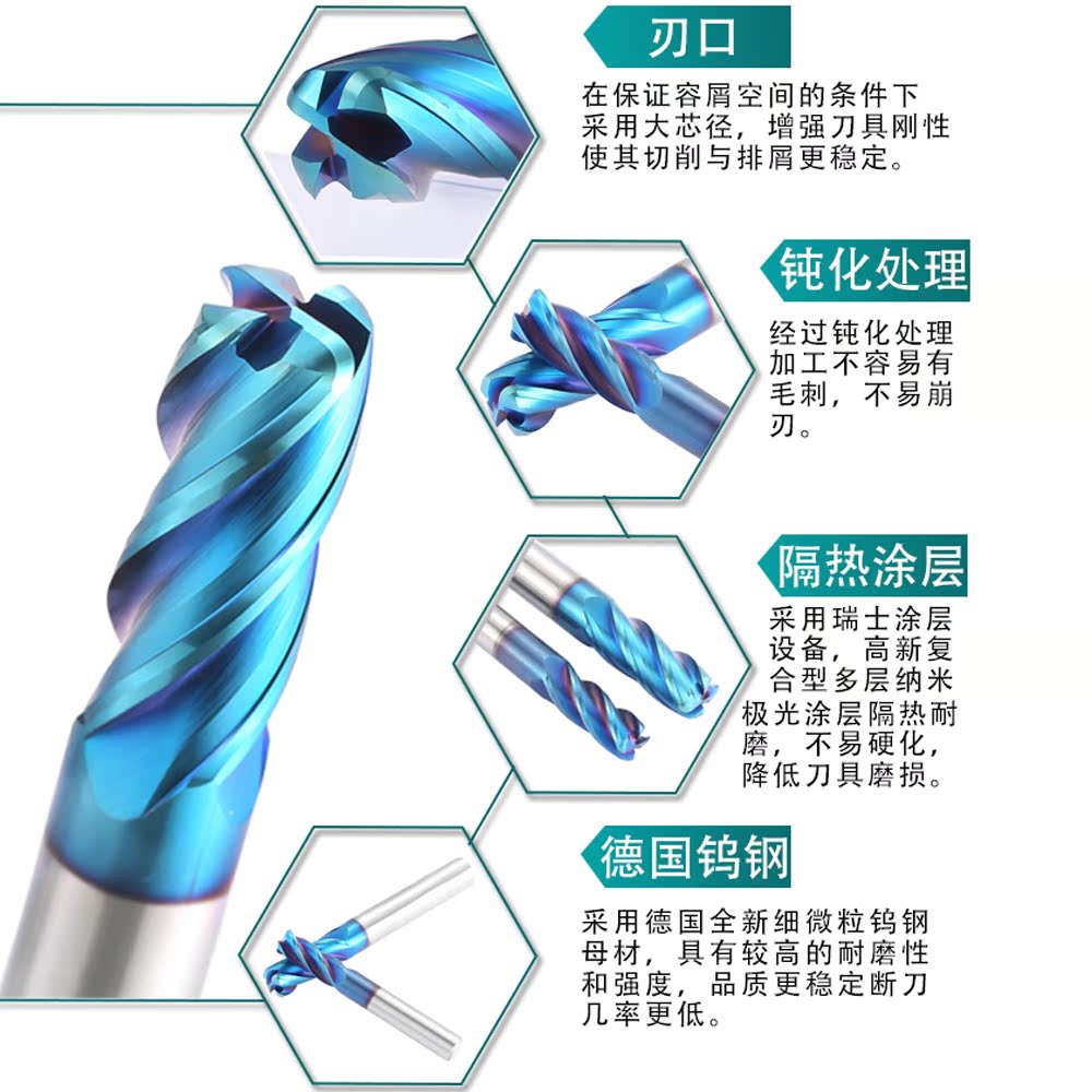HRC68° Four-edged Blue Nano Round Nose Knife
