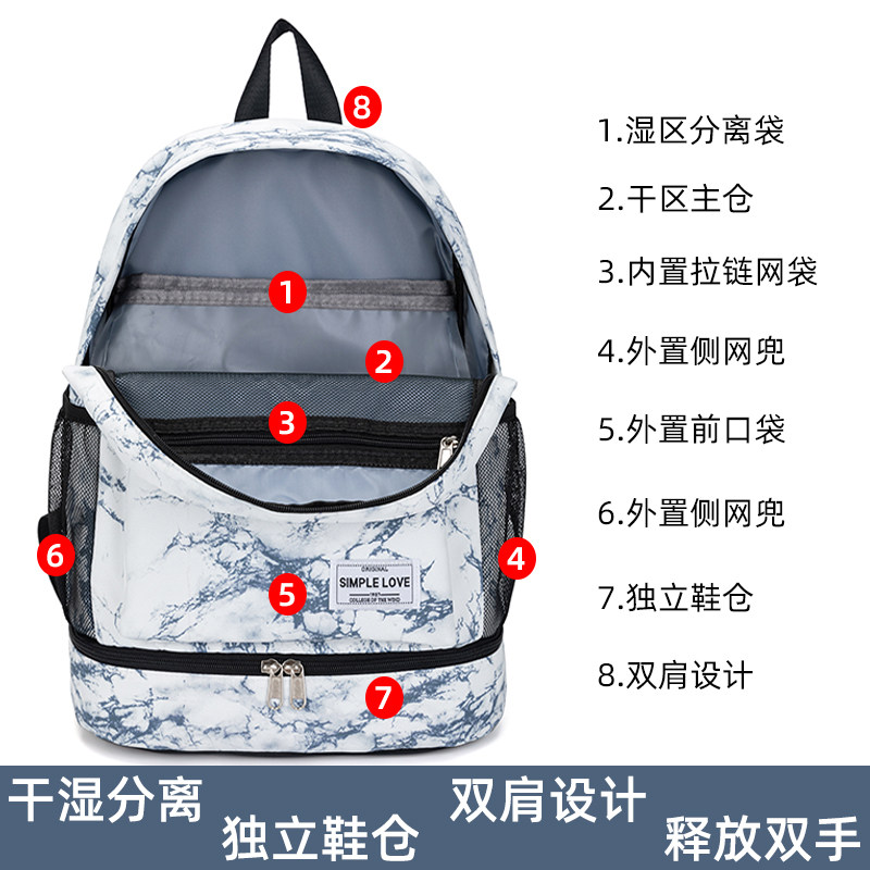 Sports backpack women's double shoulder dry wet separation swimming bag simple waterproof large capacity light excursion fitness bag