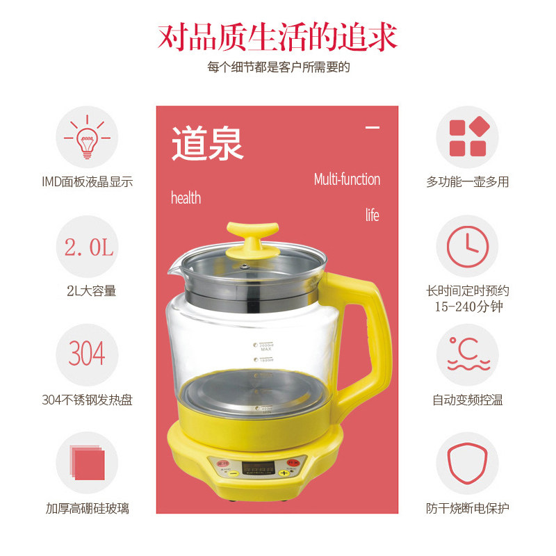 Thickened Glass Quick Cooking Pot Wellness Pot 2L Large capacity Multi-functional Home Two-style boiled tea frying Traditional Chinese Medicine Nest Jug