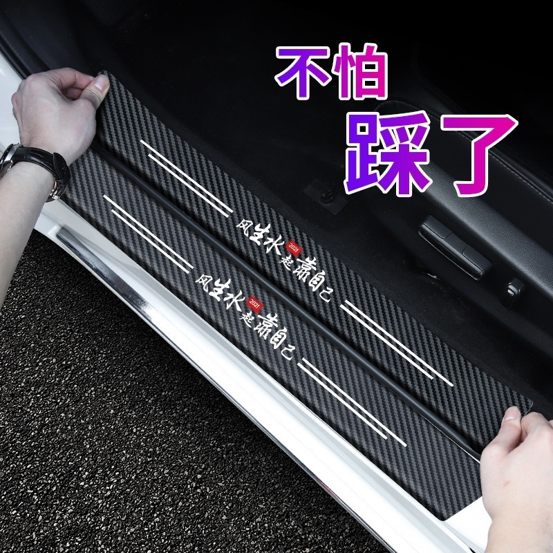 Car universal threshold bar Anti-stampede Cartoon Cute Carbon Slim self-adhesive pedal Post-tail case Anti-bumper strip