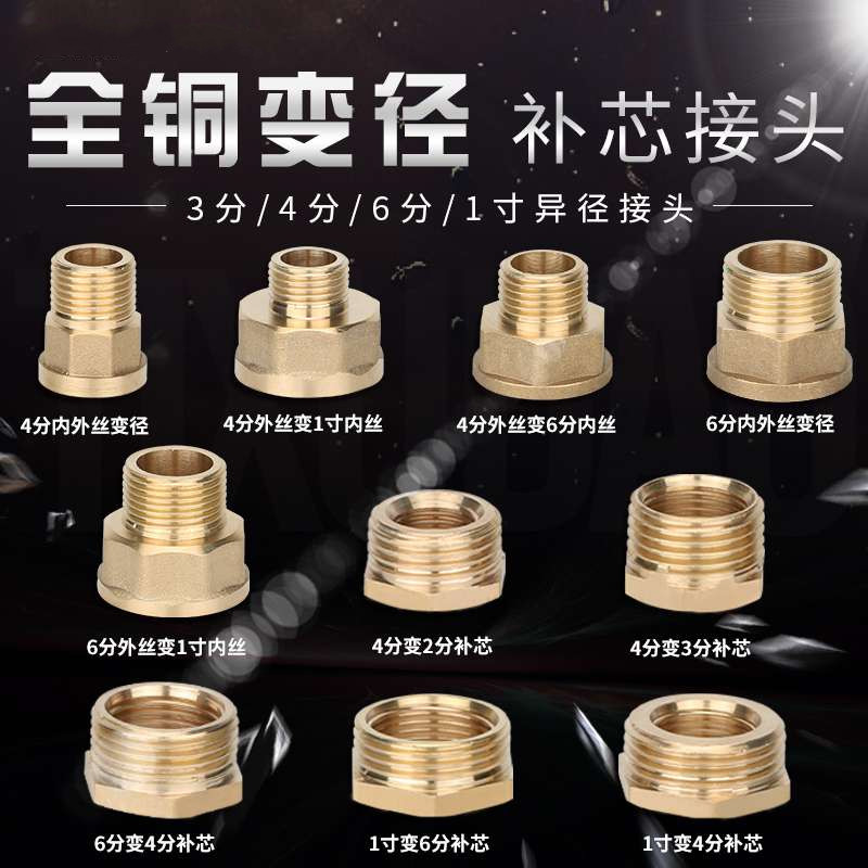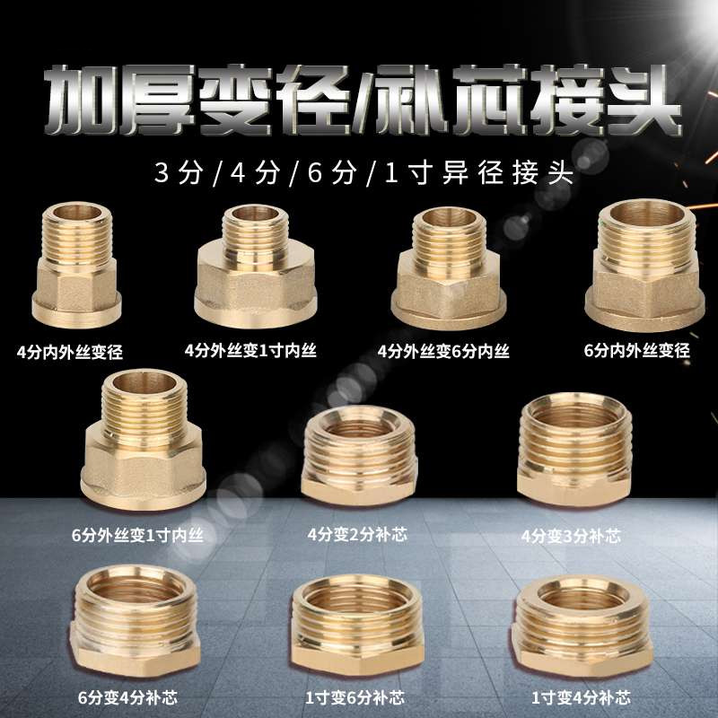 Full copper heterodiameter replenishing core thickened variable diameter 4 points change 6 points 1 inch 2 3 minutes internal and external silk water pipe fittings joint conversion head